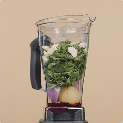 Vitamix blenders quickly break down large chunks of fruit and veggies—you don't have to chop anything smaller than a quarter of an apple. Long, skinny ingredients like carrots and celery can be added whole through the lid while the blender is running.